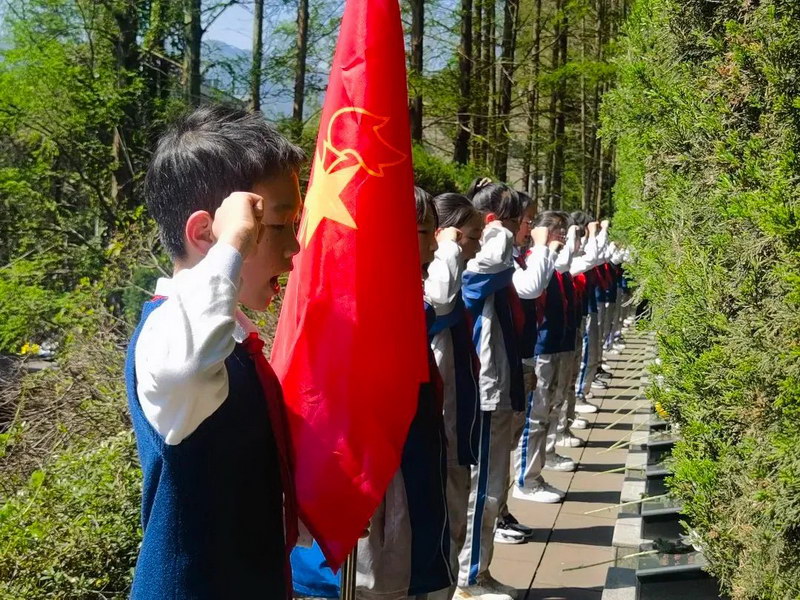 雅安市中小学学生走进雅安烈士陵园,缅怀先烈、致敬英雄。