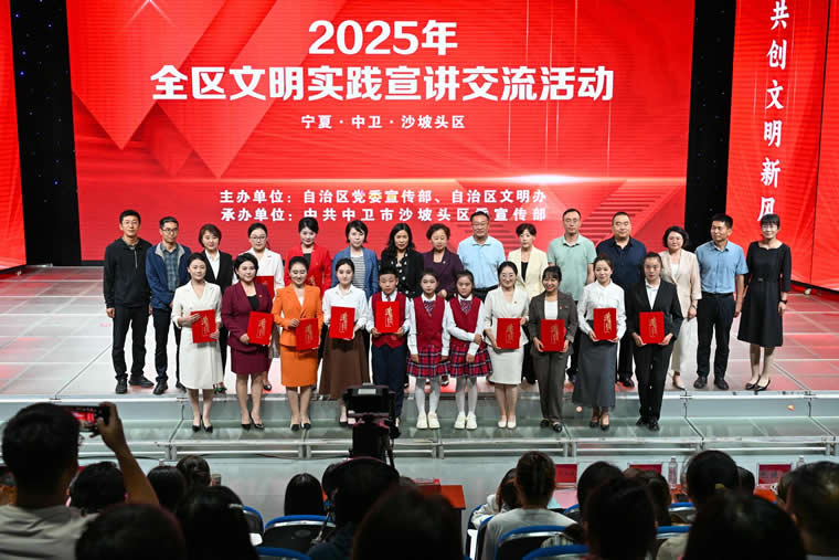 近日,2025年宁夏文明实践宣讲交流活动在中卫市举行,来自全区11名(支)优秀宣讲员(队伍)、相关部门负责人及社会群众200余人齐聚一堂,共话文明实践创新经验,共谋精神文明建设新路径。