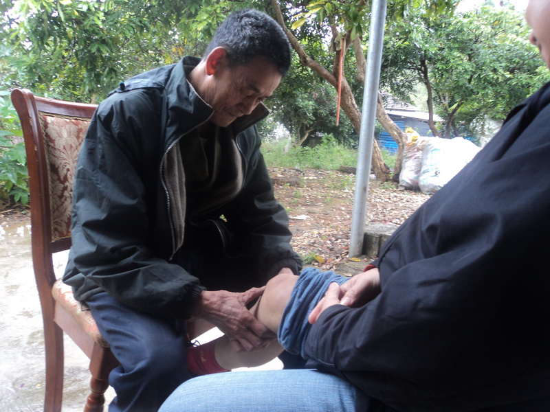 黄献阔在给患者按压腿部穴位。翔安区委文明办 供图
