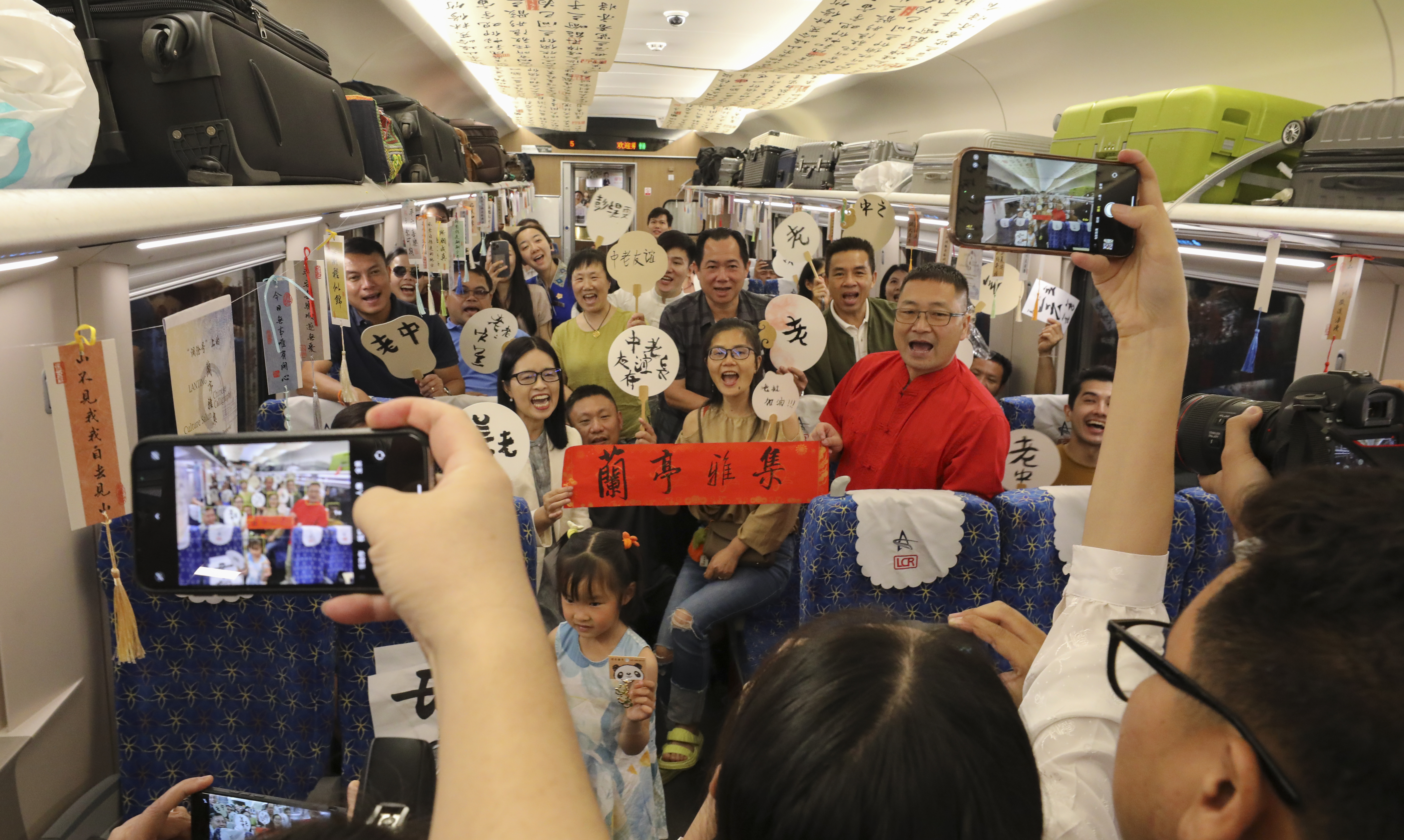 日前,由老挝中国文化中心、老中铁路有限公司主办,中老铁路万象运营管理中心承办的“兰亭·雅集”中国书法主题活动走上火车,为乘客带来了一场别开生面的文化体验。