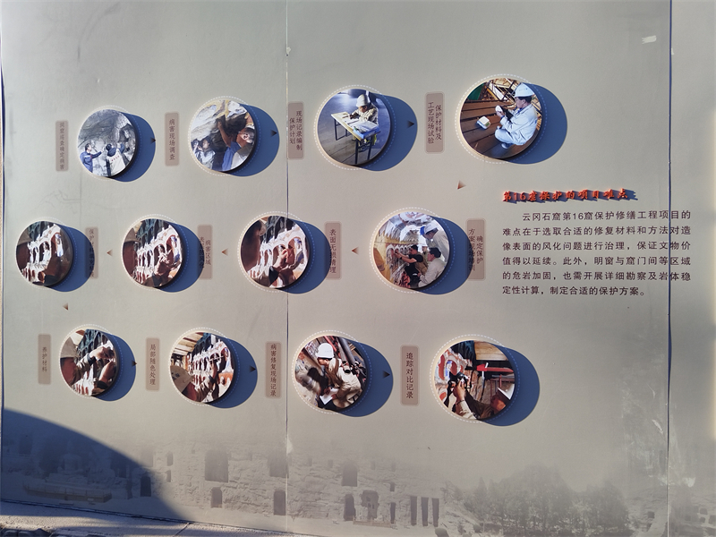 云冈石窟保护修缮过程。