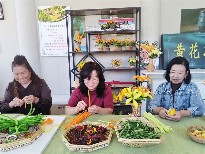 更引人注目的是村中的变化。在“忘忧小镇”里,村民张大姐正和姐妹们编织黄花手工艺品。“以前啊,过了黄花采摘季,不少妇女就是打麻将、聊闲天。现在不一样了,村里组织技能培训,大家一起搞加工、做手工,还能线上销售,日子充实多了,邻里关系也更和睦了。”张大姐的脸上洋溢着自信的笑容。