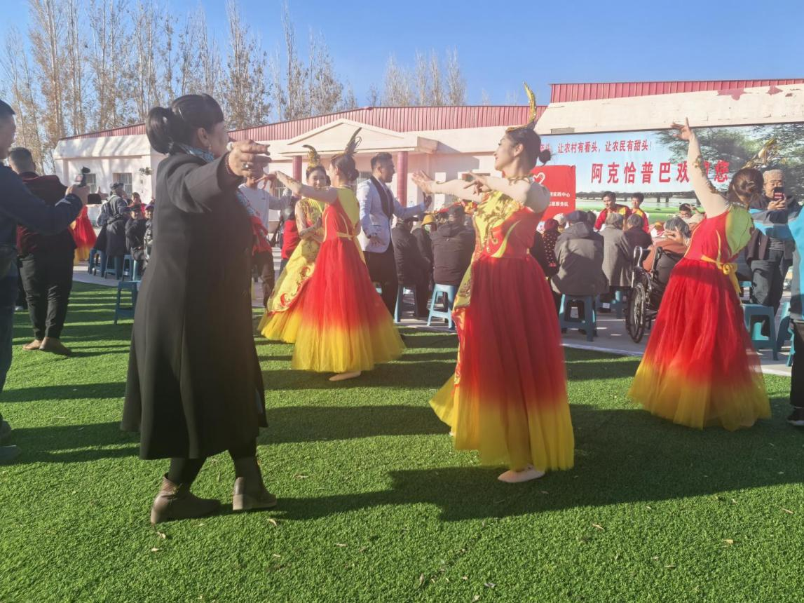 10月22日,“红石榴”文艺轻骑兵志愿服务队为阿勒泰市切尔克齐乡阿克恰普巴村村民们带来了一场精彩的演出。邓纯雪 摄
